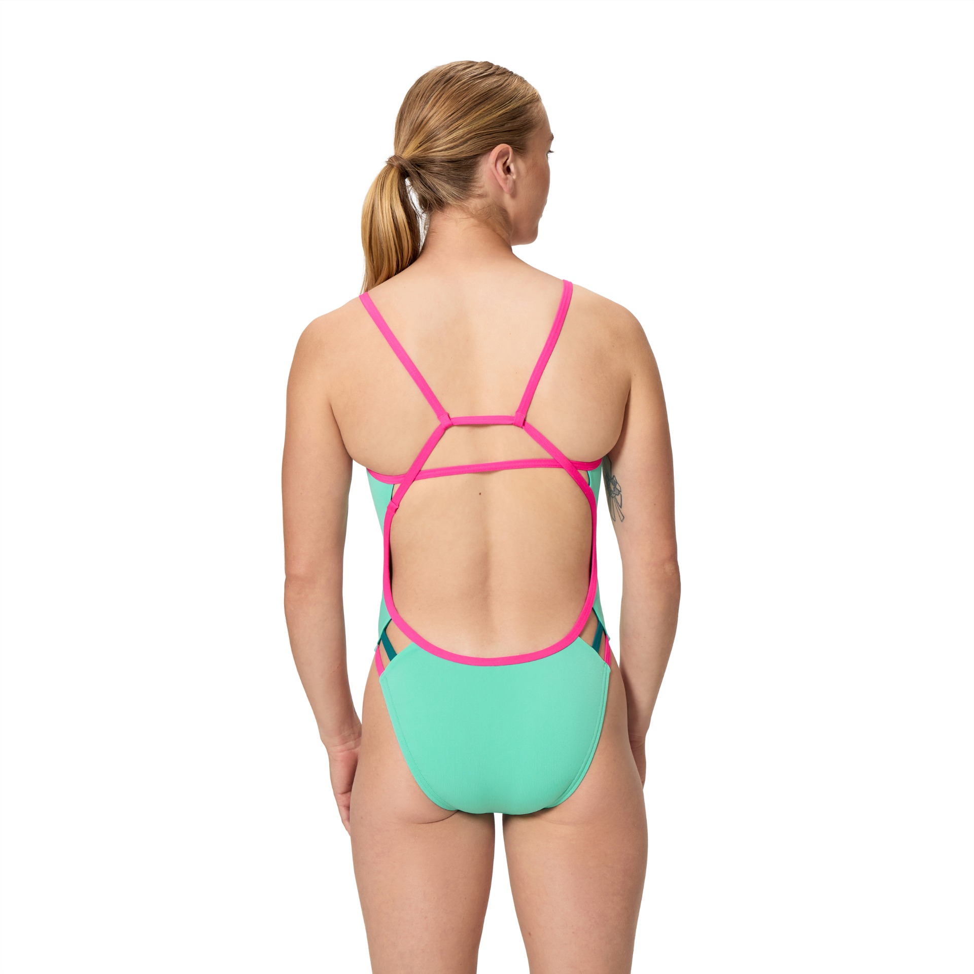 • Tri-back design kombinerar tunna axelband för bra rörelsefrihet med hög benskärning.